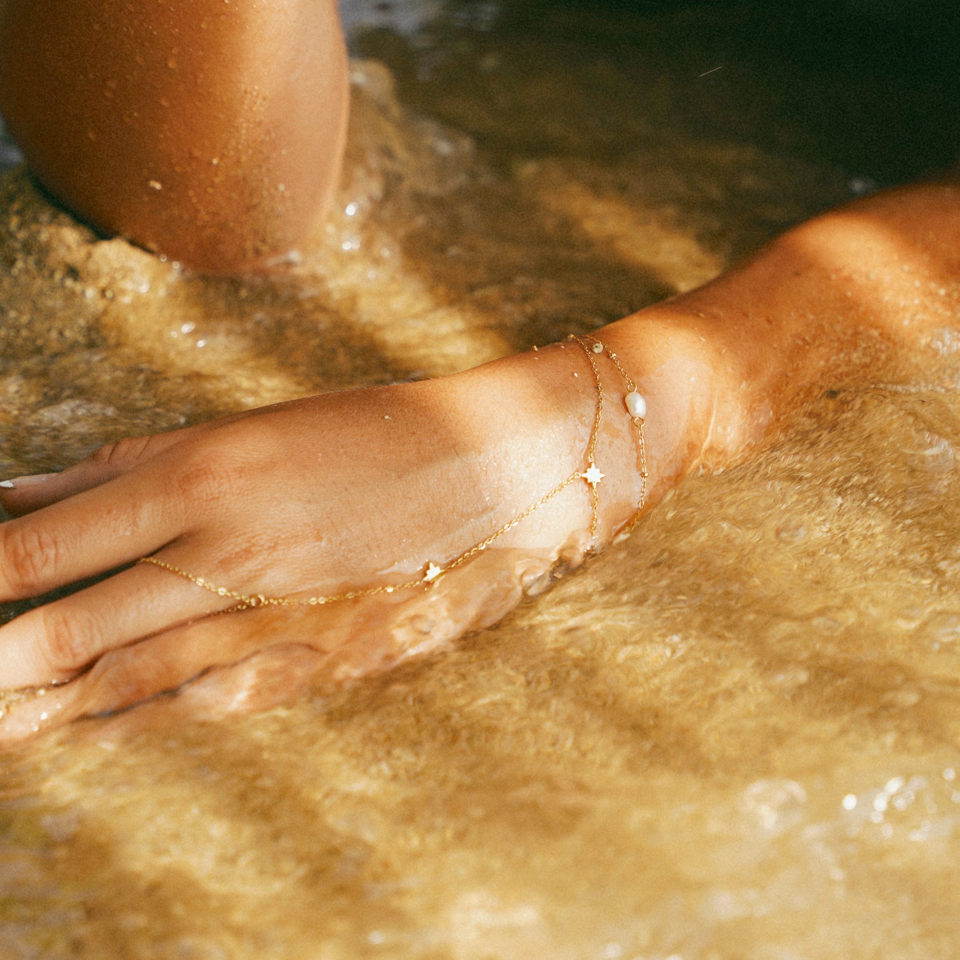 The Laney Pearl Bracelet is a modern take on a timeless classic. Freshwater-inspired pearls strung with golden accents — elegant simplicity for your wrist.