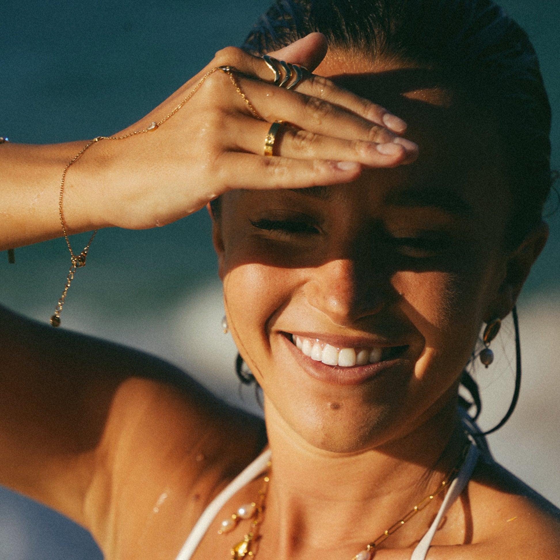 Rinse with fresh water after saltwater or chlorine. Pat dry and store in a soft pouch to keep the shine looking its best.